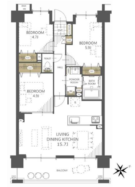 | 間取り | 3LDK (LDK15.7/洋室5.9/洋室4.7/洋室4.9) | ||||